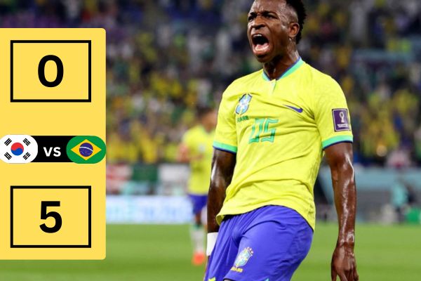 Para fechar a goleada, Vini Jr. aproveitou um contra-ataque rápido e marcou o quinto, selando uma exibição brasileira de muita alegria e eficiência.