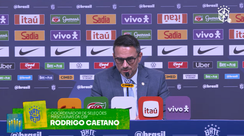 Durante a coletiva, o coordenador executivo da Seleção Brasileira, Rodrigo Caetano, confirmou também qual uniforme será utilizado nos amistosos.
